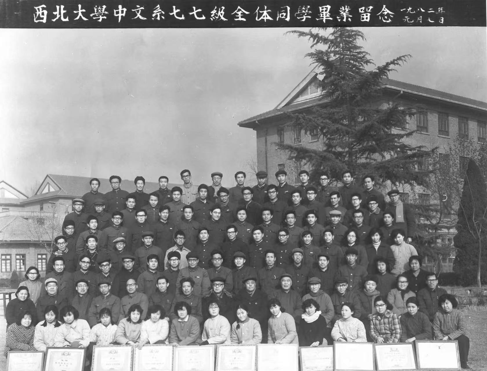 郭琦校长与中文系七七级学生在一起(二排右七为郭琦)