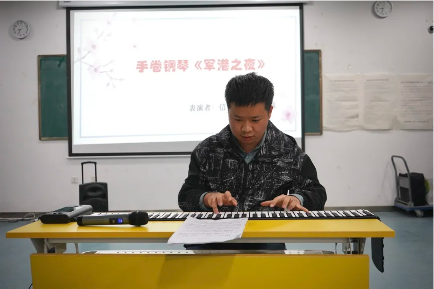 信息科学与技术学院的王士铖同学为大家精心准备了手卷钢琴《军港之夜》,琴键微拨浅吟,乐声像悠悠浪波,将夜海中的星辰与故事低声送到耳旁。