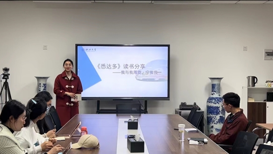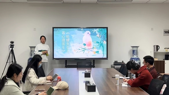 陈洪艳同学分享了心理著作《蛤蟆先生去看心理医生》,她从作品简介、主要情节、情感关系、作品思想与个人感悟等方面展开,将我们带入到“蛤蟆先生”的视角里感受过去与未来之间沿袭和革新的关系。