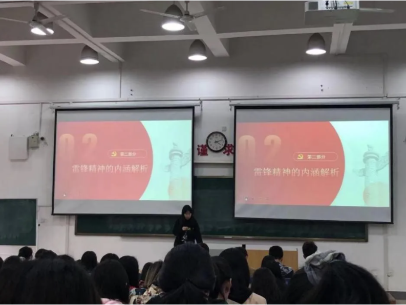 “正值“学雷锋月”,我们班开展了“讲好雷锋故事,传承雷锋精神”的主题团日活动,团支书通过多媒体展示的方式向我们讲述了雷锋同志的生平,我对雷锋精神有了进一步的深刻了解和感悟。我们都希望以雷锋同志作为榜样,将雷锋精神内化于心外化于行,在生活中做到自立自强、与人为善;在学习中做到认真实干、不懈努力,在全班形成“我为人人,人人为我”的良好风尚,争做一名有理想、有本领、有担当的大学生。”