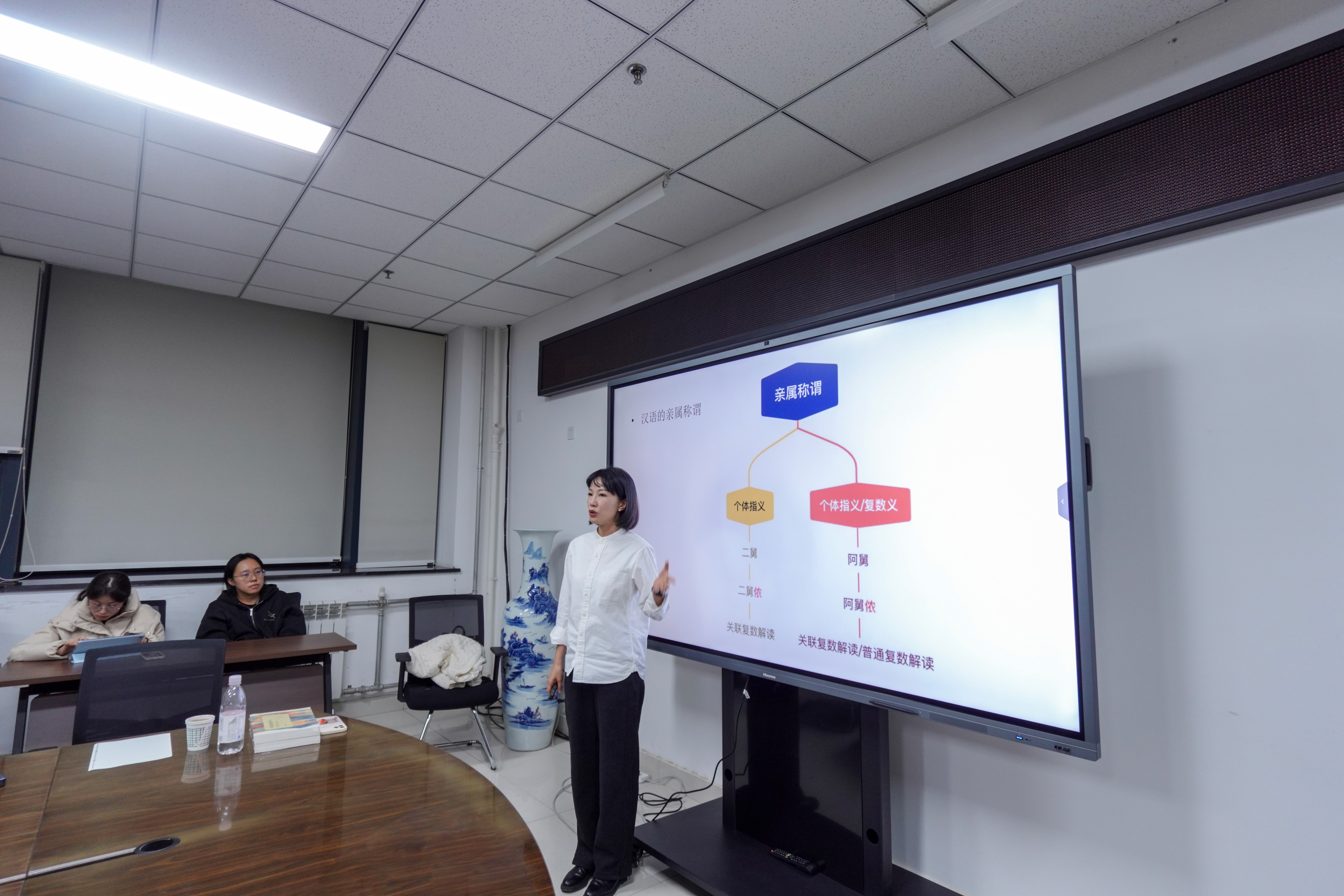 互动环节,黄瑞玲老师详细解答了同学们在平时研究中遇到的困惑,与杨炎华老师围绕复数范畴研究的热点问题进行了讨论。最后,冯鸽老师对讲座进行总结,并建议在座的研究生今后要在概念界定方面提升严谨度,学习黄瑞玲老师的研究思路与方法。